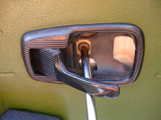 4. The next step is to remove the arm rest. On late model Westys the arm rest is held on by three phillips screws accessed from below. The earlier models had a separate door pull held on with two screws just like the non-Westfalias.