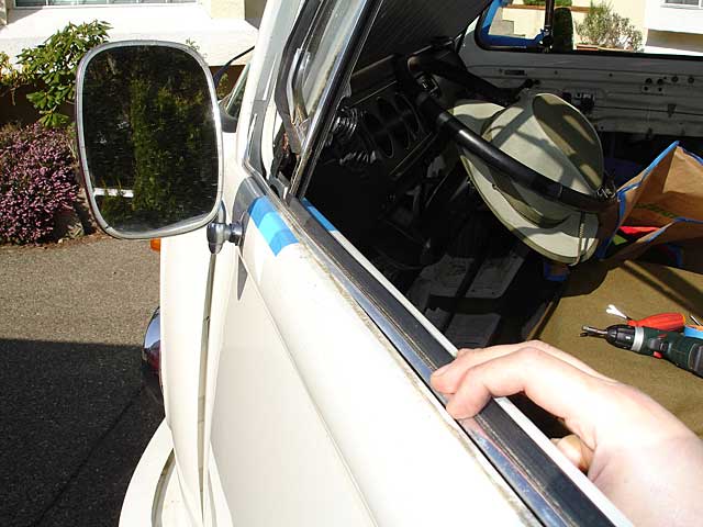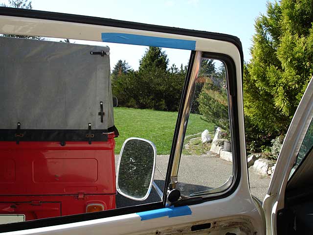 Where is the painter's tape protecting the window I talked about earlier? It should be on the window edges at this point because the barbs on the felt channel clips can scratch the glass as you raise the window.