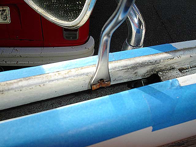 Now it a good opportunity to remove the rust and repaint these area. All of the black frames that VW uses as windows rusted like this.
