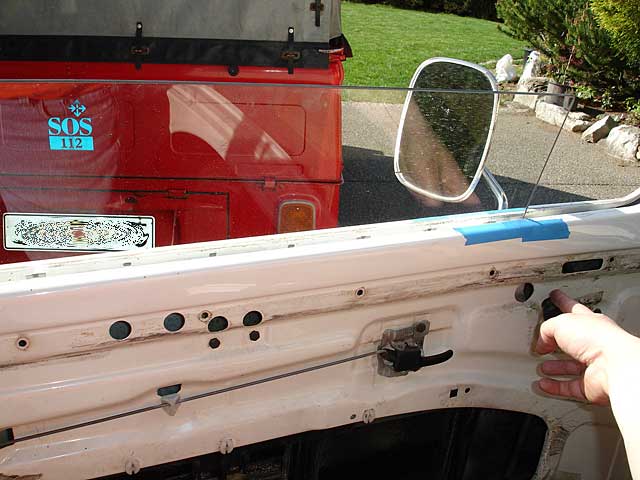 1. Lift the window back onto the lift bracket of the window regulator. It should be in the bottom position unlike this photo which I took after raising the window and realizing I had forgotten to take a photo.