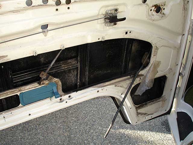 Even a new scraper will let a certain amount of water bypass it but these old ones with their worn out rubber let even more pass and help to rust out the bottom of the door.