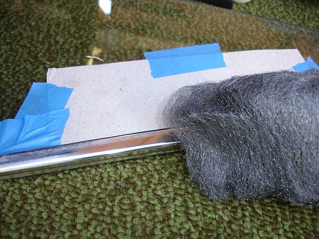 I also decided to shine up the chrome parts. Fine steel wool (0000) works well as it does for chrome hubcaps. Don't work it too hard or you will scratch the chrome. Use a polishing compound that will remove the oxidization.