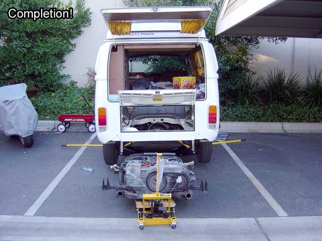 | T.12) A scene from "Dr. StrangeBus: or How I Learned to Stop Worrying about the Leak and Drop the Engine". Eat your heart out Slim Pickens.That's it. See my 091 Transmission Refresh article for what to do while the transmission is out. |