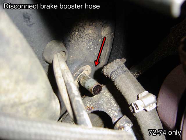 | T.3) 72-74 dual carbs: pull the two leads from the vacuum advance cutoff switch at the front of the transmission (nose cone). See Bentley Engine & Clutch page 73 for a description of this unit. It's installed on all 72-74 models except for the 74 with the M/T. |