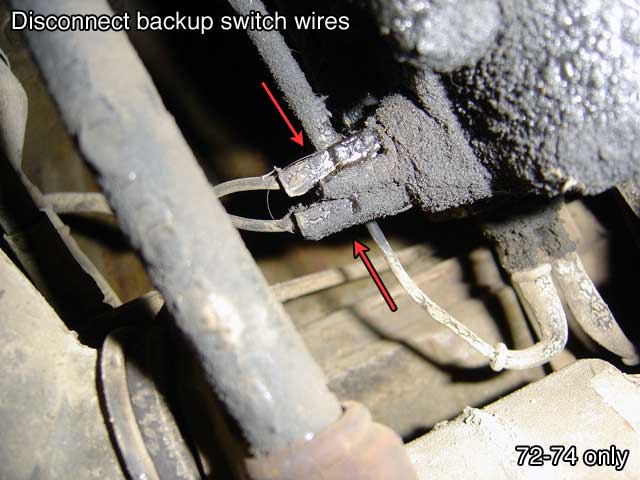 | T.3) 72-74 dual carbs: the backup light switch is on the passenger side. Pull both leads. |