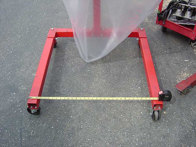 What I like most about the stand besides its use an an engine dolly and price are the dimensions: 29" high, 33" long, 33.5" wide (29" between the legs).