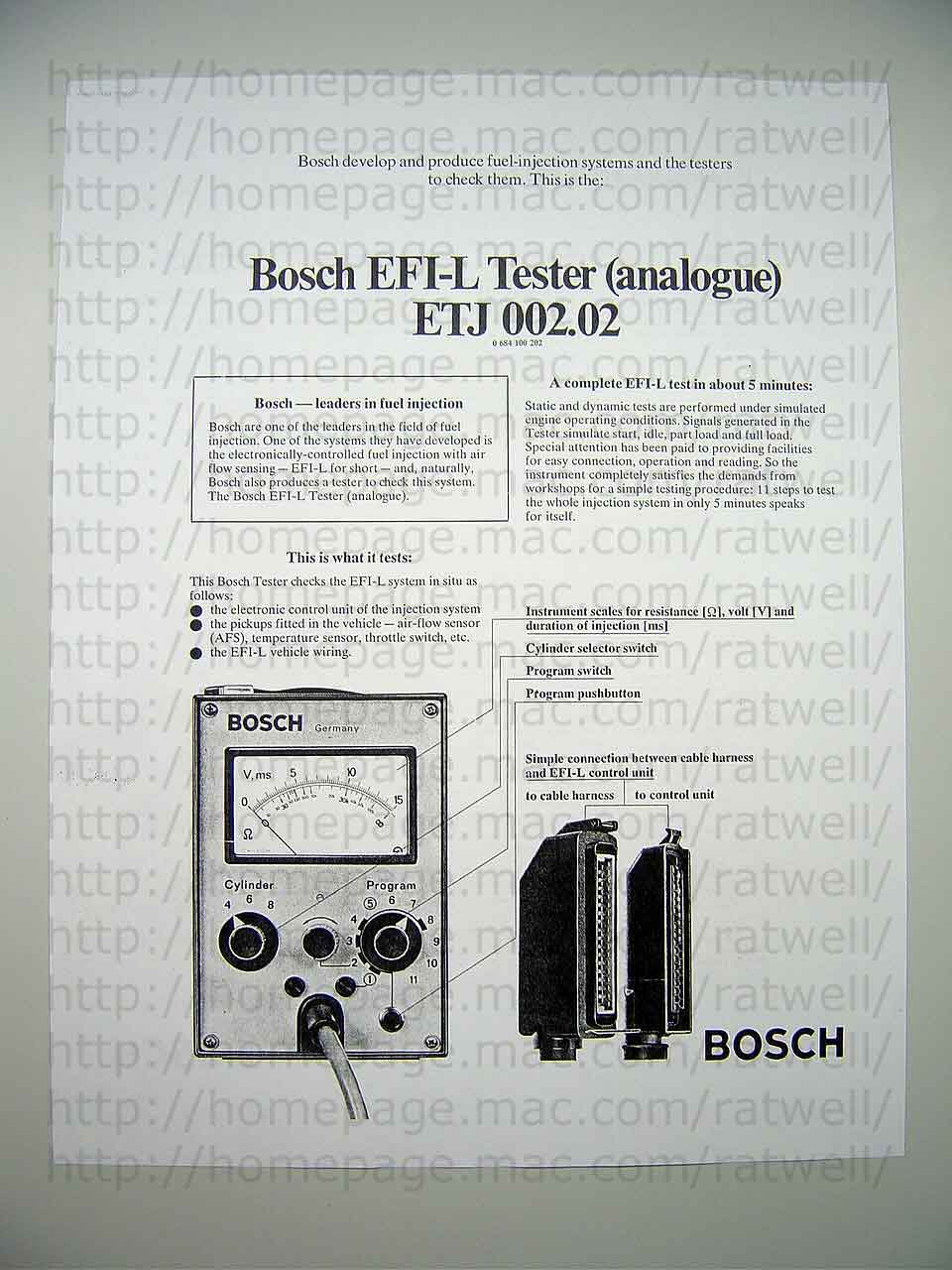 That company is absolutely fabulous: not only did they tell me that they stopped producing that tester in 1989 but they mailed me an operating manual and some sales literature. I was pretty hyped that it was a vintage Bosch ECU tester and eagerly awaited the documentation to verify it was intended to test L-Jetronic and got lucky.