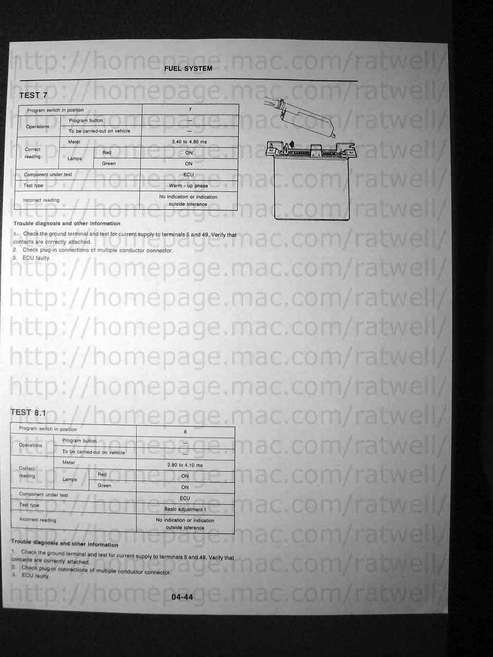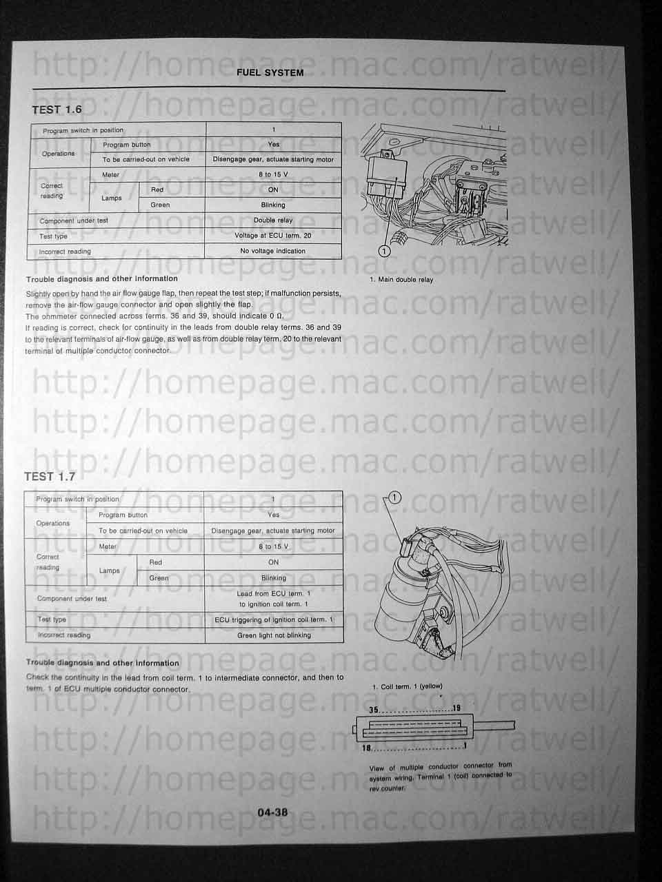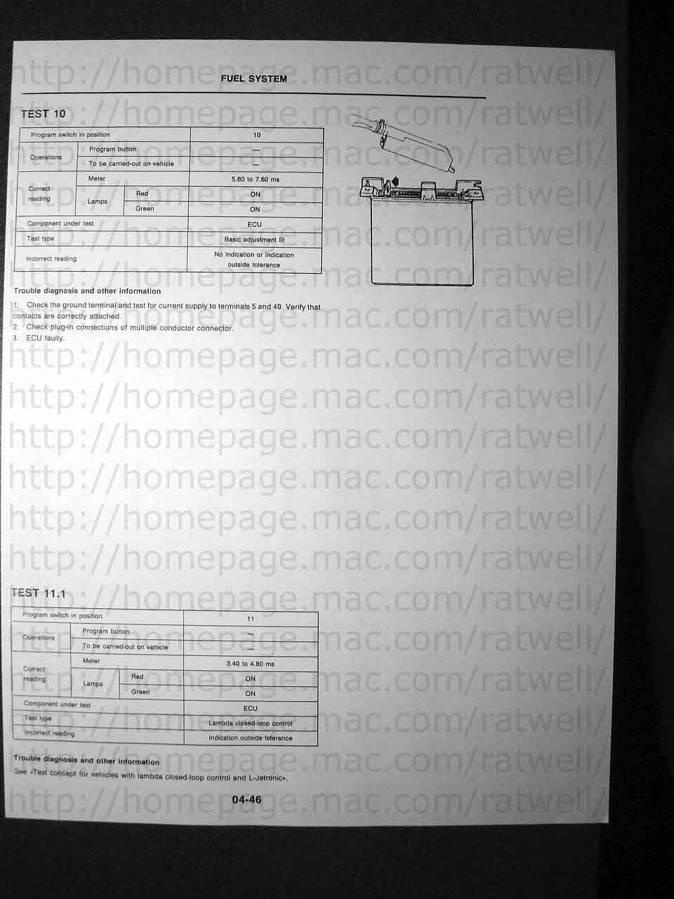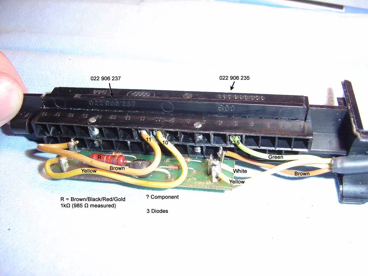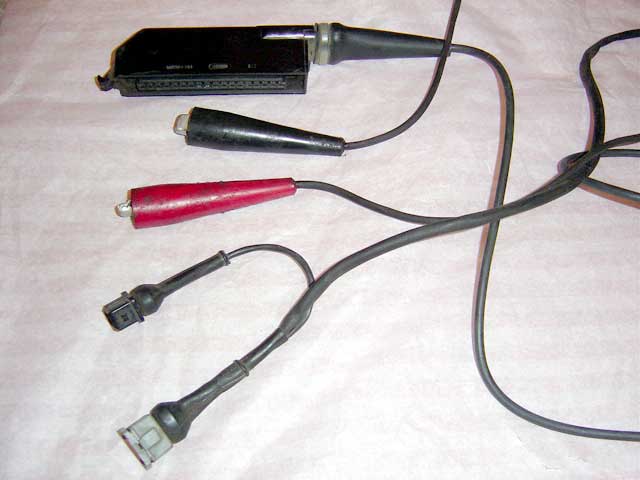 If you have a tester and want to build a cable you'll need to butcher an L-Jetronic wiring harness for the parts. You can locate the battery clamps easily I bet. The male FI connector was hard to find until I finally located Eagle Day as a vendor so it's now possible to build a cable. It's a little more complicated that it seems and I'm not 100% sure about the components on the circuit board. I've yet to identify the exact diodes used and the black object. Any help would be appreciated.